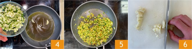 Add the zucchini 4, add salt, and cook over medium heat for 10 minutes or until well browned 5. Meanwhile, cut the pecorino into cubes of 0.2 inches 6.