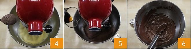 When the eggs are incorporated, add the previously sifted flour, one tablespoon at a time 4, and lastly the Guinness beer 5, then mix until you get a creamy and homogeneous mixture 6.