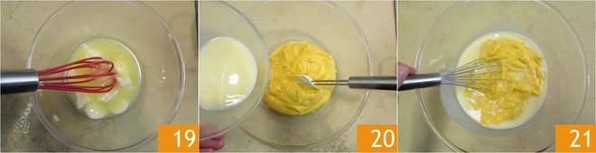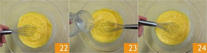 You should obtain a smooth cream and the butter must be completely absorbed 22. Now, pour the liqueur in 3 parts 23, continuing to stir with the whisk. You will get a smooth and shiny cream 24. Store in the refrigerator until use.