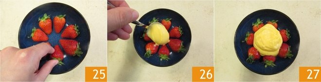 To enjoy it pure, you can simply place some strawberries on a plate 25, add the mousseline cream on top 26, and serve 27!
