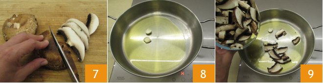 Remove soil residues with a brush or cloth 4, then slice the larger ones, such as the champignons 5, the pleurotus (or king oyster mushrooms) 6