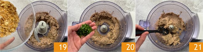 Add the breadcrumbs 19 and blend again until you obtain a fairly homogeneous mixture, then add the chopped parsley 20. Adjust with salt and pepper and mix well 21.