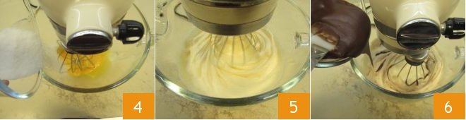 and continue whisking until well combined: don't worry if the mixture deflates, it's normal 7. Remove the bowl from the mixer and sift the flour into the mixture 8, then mix well with a spatula, making a folding motion from bottom to top 9.