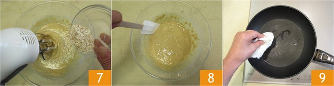Finally, add the rolled oats 7. The batter is ready to be cooked 8. Heat the pan and lightly grease it with a bit of butter 9.