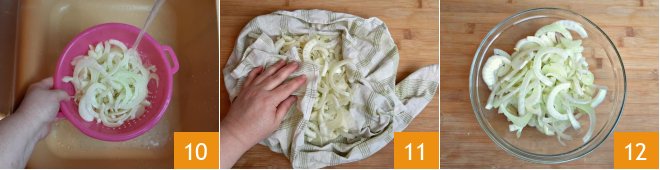 Wash them well 10 and dry them with a kitchen towel 11. Then transfer them to a large bowl 12.