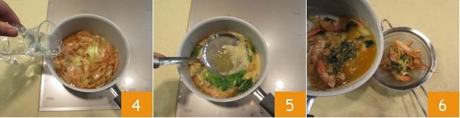 To prepare the one-pot quinoa, start by checking the instructions on the quinoa package: if it needs rinsing, rinse it under running water and then dry it on a tea towel, patting it to remove excess water. Then proceed with the How to clean shrimp. Use your hands to detach the head, then pull off the legs and remove the shell, leaving the tail intact 1. With a small knife, cut along the back of each shrimp 2 and remove the intestine using the tip of the knife 3. Store the cleaned shrimp in the refrigerator and use the scraps to make the Shellfish Stock.