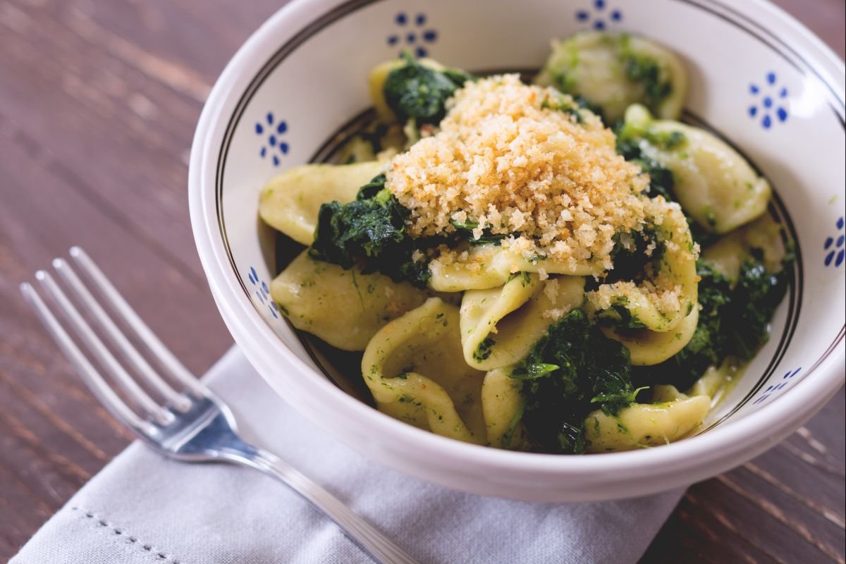 Orecchiette with broccoli rabe, also called "recchitelle" or "strascinati", are one of the most representative typical dishes of Puglia, especially of the province of Bari. This first course is prepared throughout the region, in different versions using vegetables other than broccoli rabe, such as broccoli or tomato sauce. The secret of this dish lies in the optimal cooking of vegetables with pasta, and the experience and knowledge of raw ingredients result in a perfect dish. In keeping with tradition, Chef Fabio Abbattista has cooked them for us making homemade orecchiette with durum wheat semolina, cooked in boiling water together with broccoli rabe to better absorb the aromas, stirred with tasty sautéed anchovies in oil flavored with a clove of garlic. Orecchiette with broccoli rabe is a traditional country dish, simple but with a unique taste that comes from the combination of strong flavors. If you love genuine recipes, come and discover other Apulian delicacies such as pancotto del Gargano or friselle.