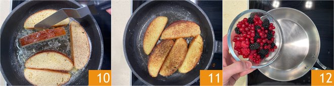 Cook over medium heat for 1-2 minutes per side 10, until golden brown 11 and set aside. While you cook all the slices of brioche bread, focus on the sauce: in a pan, place the berries 12.