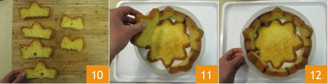 With the untoasted slices, create the tips of the ring. So, you should get a total of 4 pieces with 3 7 tips and 2 pieces with 2 tips 8, if needed you can trim them further according to the mold and the thickness of the slices 9.