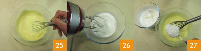 Stir and let it cool for a few minutes 25. In the meantime, pour the cream into a bowl, whip it without reaching the classic stiff peaks but rather a softer consistency 26 and add it to the cream, mixing gently 27.