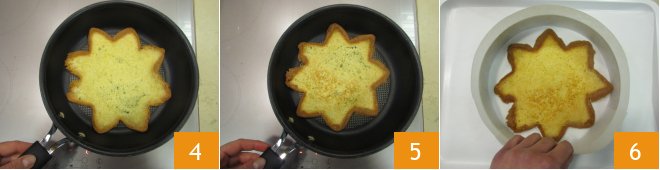 and then toast them in a non-stick pan for a few moments 4, until both sides are completely golden 5. Place the first toasted slice at the bottom of a plate where you have already placed a 9-inch pastry ring and lined it with parchment paper 6.