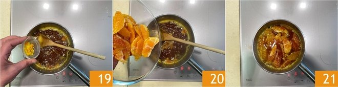 Add the lemon zest 19 and orange segments 20. Let it cook for a few minutes 21.