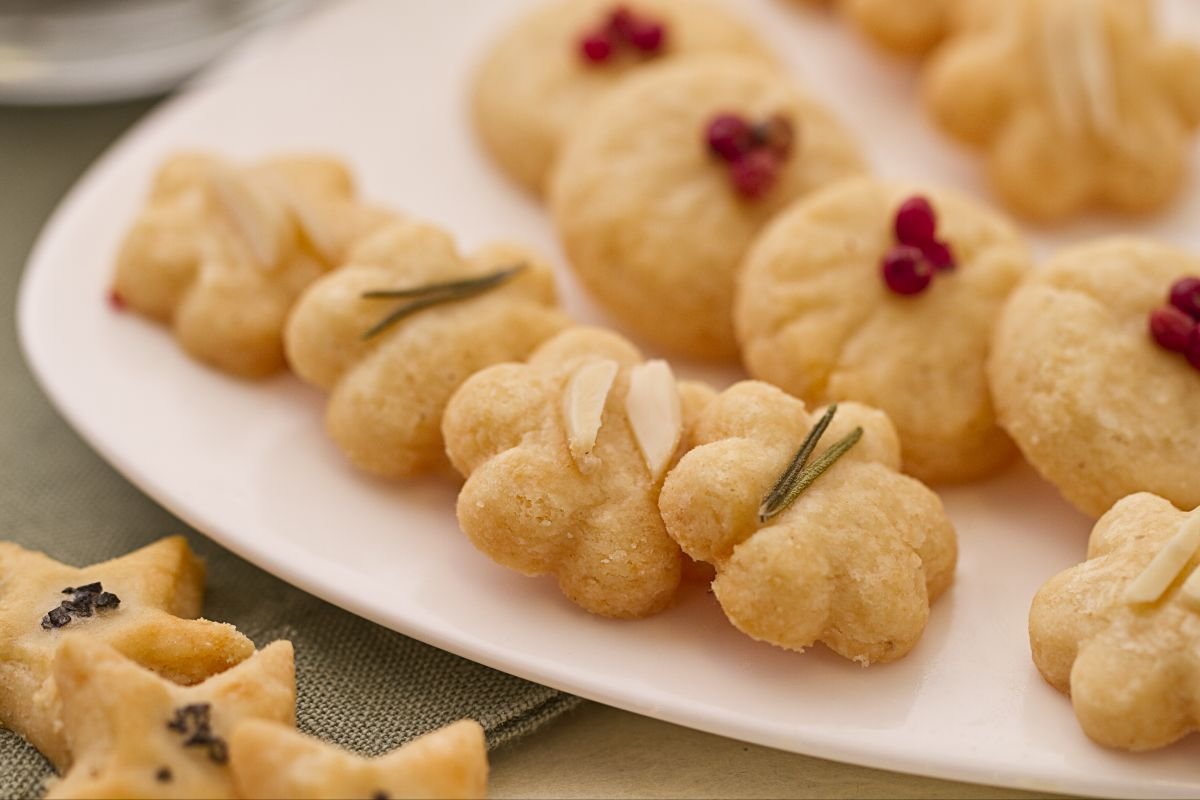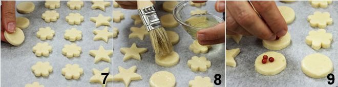 and place them on a baking tray lined with parchment paper 7. Brush the surface of the shortbread cookies with egg white 8, then sprinkle each cookie with different spices 9. Place the obtained shapes in a preheated oven at 355°F for 10 minutes, then, once cooked, remove the shortbread cookies from the oven and let them cool on a rack.
