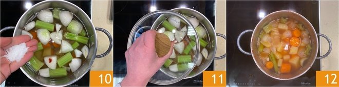 Season with salt 10, then turn on the heat to medium, cover with a lid 11, and let it gently boil for about 30 minutes, until the vegetables are soft 12.