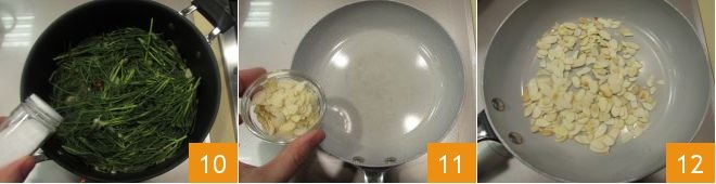 Salt to taste 10 and cook for about 10 minutes over moderate heat. Meanwhile, place the sliced almonds in a hot non-stick pan and toast them for a few minutes, stirring the pan often, until they are lightly golden 12.