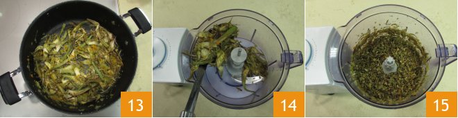 Cook gently for another 4-5 minutes 13, then transfer everything to the mixer 14 and blend until you get small pieces: they should resemble cooked ground meat 15.