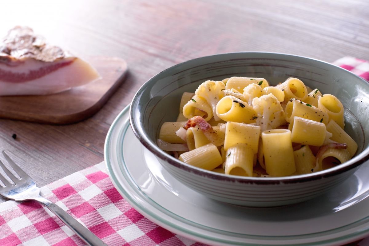 If you believe there aren't any tasty dishes with cauliflower, we'll quickly change your mind with our pasta with cauliflower and guanciale recipe. Crispy and golden strips of guanciale with their savory and enticing taste tone down the strong flavor of cauliflower florets, achieving a skillful balance between rustic ingredients that evoke farm flavors. Pasta with cauliflower and guanciale can be considered a variant of the famous gricia and is perfect for those who want to bring an easy and quick dish to the table that highlights winter vegetables without forgetting taste. But we are no strangers to these alluring combinations that, with clever tweaks, make even the least loved ingredients appetizing: from the extravagant and unusual Fake cauliflower pizza to the velvety and creamy Cauliflower Purée, we have something for every taste!