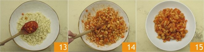 Drain the pasta into a bowl, add the sauce 13 and mix well 14. Your pasta with chickpea ragù is ready to be served 15!