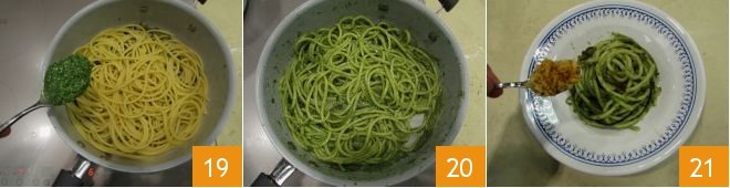 then add the puntarelle cream 19 and sauté everything for a few moments 20. Plate the pasta with cooked puntarelle by adding a spoonful of toasted breadcrumbs to each plate 21 and enjoy it while it's still hot!