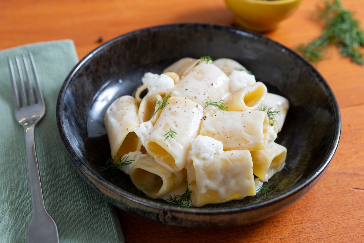 With creamed cod, you can prepare many delicious appetizers, like the classic crostini, but also exquisite first courses like this one we present to you today: pasta with creamed cod, anchovies, and fennel. For the pasta shape, we chose paccheri, ready to embrace this creamy and flavorful sauce, thanks to the addition of anchovies that completely melt during cooking... along with the cream, they form a truly velvety sauce ready to coat the pasta perfectly and release all their savory taste!