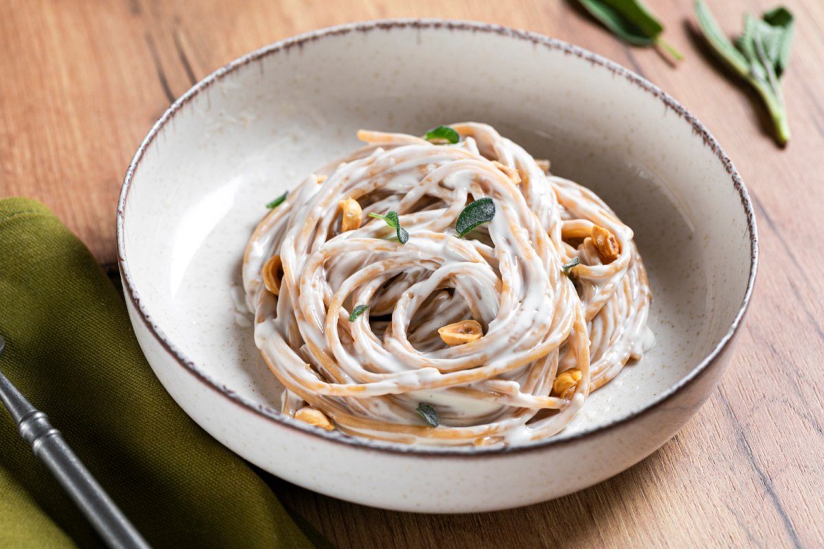 Pasta with hazelnuts? Seriously good stuff. Especially when it comes from the northern regions of Italy. Up in Piedmont and those nearby mountains, folks have been mixing local hazelnuts with all kinds of rich cheeses for ages. And look, this pasta with toma cheese totally stands out. It's got a velvety sauce made from semi-aged toma and a sprinkle of Grana Padano. Really, the cheese melts down into something super smooth and creamy, clinging to every strand of integral spaghetti. Toasted hazelnuts are scattered on top, adding a crispy bite and those roasted, almost sweet aromas. Pretty special. Plus, right before serving, you get a hit of fried sage—nothing too strong, just enough to work with the rest of the flavors.