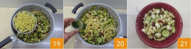 Pour in the parsley 16, taking care to set aside a little for the final decoration of the dish, and mix the ingredients 17. Now cook the pasta in plenty of salted water 18 and drain it al dente.