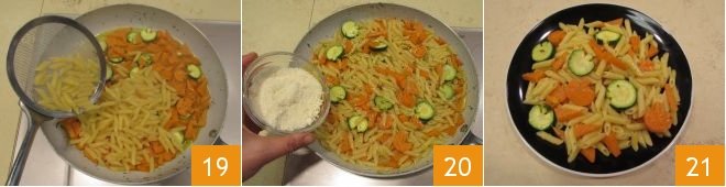Cook the pasta for 6 minutes or the time indicated on the package, then drain it directly into the pan with the sauce 19, season with grated Parmesan cheese 20 and serve the pasta with pumpkins immediately 21!