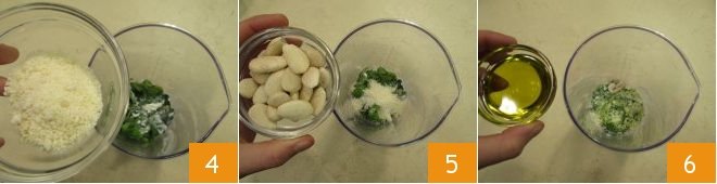 the grated Parmesan 4, peeled almonds 5, and the oil 6.