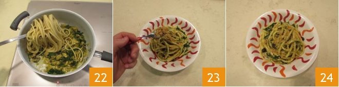 At this point, the pasta should be cooked al dente, drained and then sauteed briefly in the pan 22. Place and garnish with the breading 23: your pasta with sardines is ready, enjoy your meal!