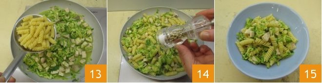 Drain them with a slotted spoon directly into the pan with the fish 13. Add a bit of pepper to taste 14 and serve the pasta with swordfish and zucchini hot 15!