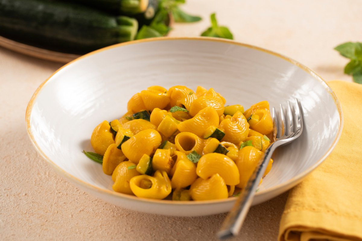 If you want to prepare an easy and quick main course that's still really tasty, pasta with zucchini and saffron is just what you need! Save this recipe in your notebooks; it will be a trump card to show off when unexpected guests arrive or even when you simply don't know what to cook for a family dinner. The classic pasta and zucchini is dressed in gold thanks to the unmistakable color of saffron, absorbing all its taste and fragrance, thus transforming into an original and surprising dish! We chose to use pipe pasta, but of course, you can use whatever you love most. Discover how easy it is to prepare pasta with zucchini and saffron, a perfect dinner-saver ready in just 30 minutes and ideal to serve on many occasions!