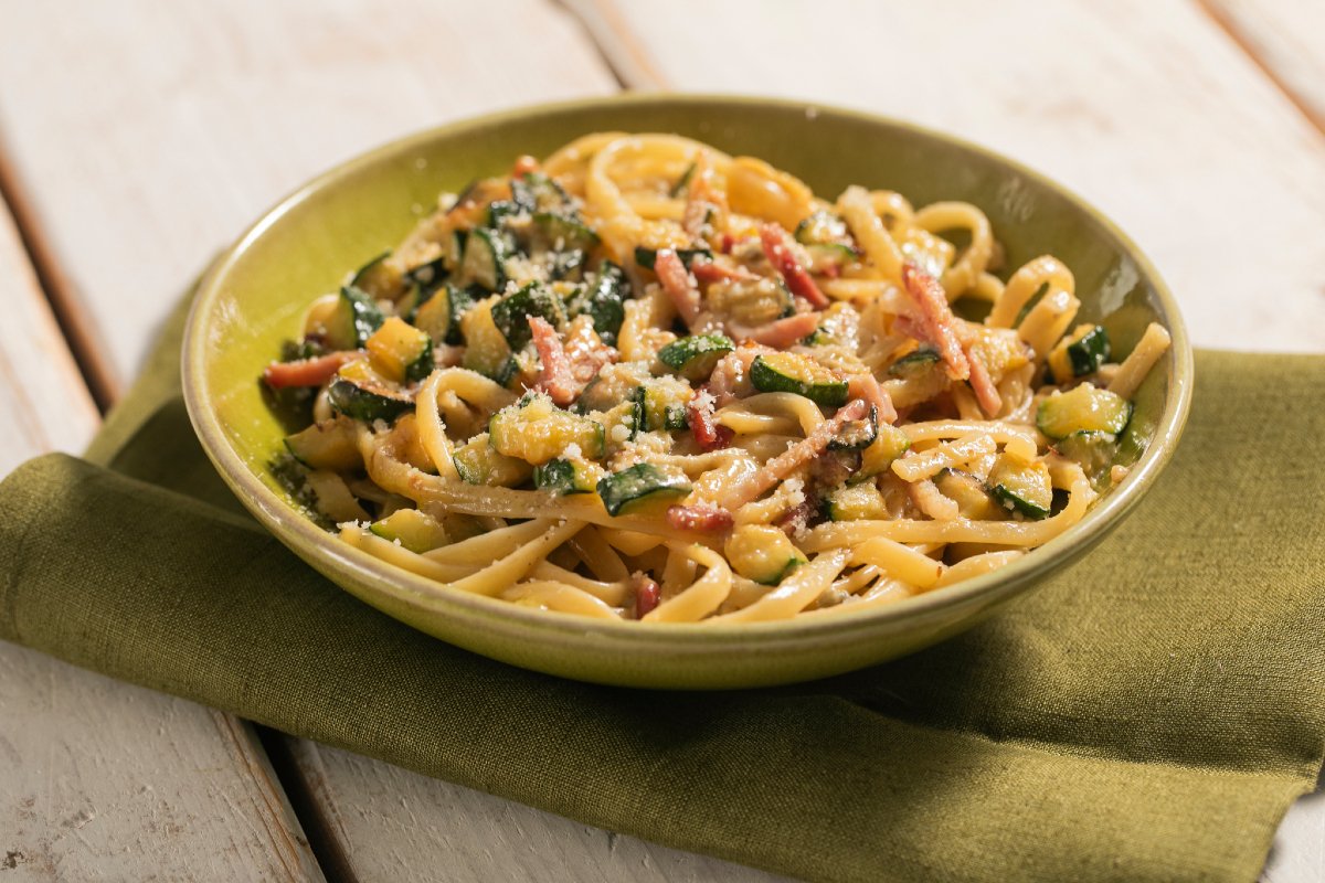 Pasta with zucchini, speck, and gorgonzola brings a little taste of Northern Italy right to your kitchen. I mean, this dish is super popular in places like Trentino-Alto Adige, Veneto and Lombardy. You get this strong taste with barely any effort. The speck—which is a smoked ham from the mountains, adds that salty depth. And, you know, gorgonzola, a classic Lombard cheese, brings that rich creaminess. Mixed with the sweetness of zucchini, this gorgonzola pasta dish is really, really creamy and satisfying. Pretty simple, really. It's quick to make—seriously, just about the time it takes to cook your favorite pasta, like linguine.