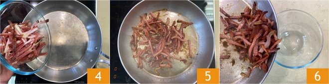 Place the speck in a hot pan 4 and, without adding any fat, brown over medium heat for about 5 minutes, until it becomes nicely crispy 5. Remove the speck from the pan and set it aside 6.