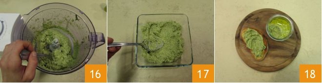 until you obtain a smooth consistency 16. Transfer your pâté into a bowl 17, place it in the refrigerator, covered with cling film in contact, and let it rest for about 20 minutes, so it becomes more compact. Serve it on bread crostini 18!