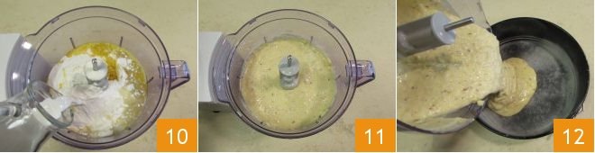 and the milk 10. Turn on the blades and blend everything until you get a creamy mixture 11. Butter and flour a 9-inch diameter cake pan and pour the mixture inside 12.
