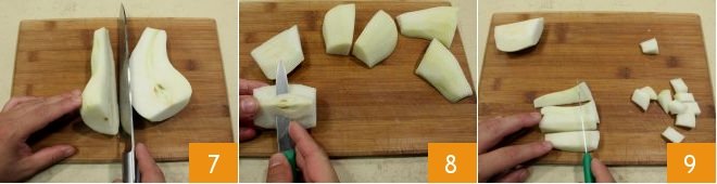 remove the core by cutting them in half (7-8) and dice them into not too small pieces 9.