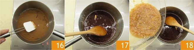 Mix well until dissolved 16 then continue to cook until the syrup reaches a temperature of 221°F. At this point, add the pears 18.