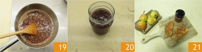 Mix well and bring to a boil again 19. The pear and cinnamon jam is ready, transfer it into jars 20, let it cool, and enjoy it 21. If you want to use it immediately to prepare the tart, just pour it into a bowl and let it cool.