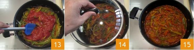 stir 13 and cook for another 15 minutes with the lid on 14. Once cooked, your peperonata is ready to be enjoyed 15 hot, warm or even cold to accompany meat, fish or cheese dishes!
