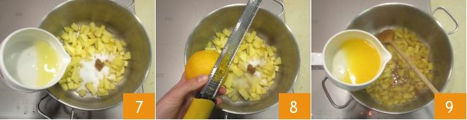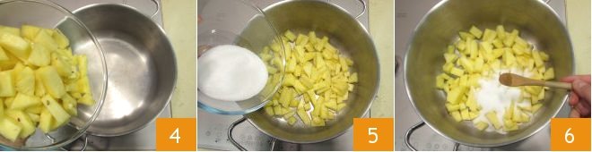 Place the pineapple in a large saucepan 4 and add the rest of the ingredients: the sugar 5, the cinnamon 6,