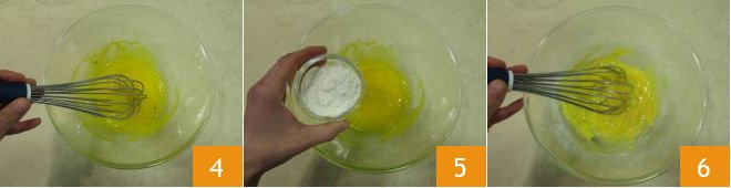 briefly beat 4, then add the cornstarch 5 and mix again with the whisk 6 until you get a homogeneous mixture.