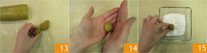You should get about 20 pieces 13. Form balls with your hands 14. Roll the balls in powdered sugar 15 and