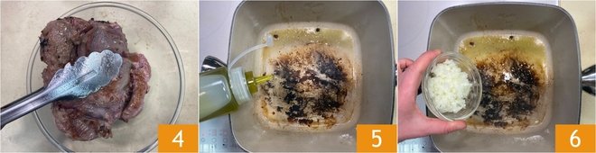 The sausage will take less time to brown, so once ready, you can remove it from the casserole and transfer it to a bowl; as the other pieces of meat brown, remove them too and keep them aside in the bowl 4. In the same casserole, add another drizzle of oil to the cooking juices 5, then add the chopped onion 6.