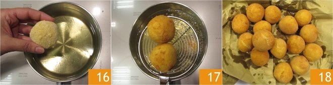 Heat the seed oil in a saucepan and fry 2-3 patties at a time for about 5-6 minutes 16. When they are well golden, drain them 17 and transfer them to a sheet of frying paper 18. Your potato and gorgonzola patties are ready to be enjoyed!