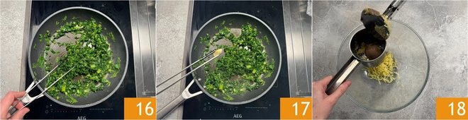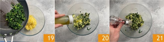 Add the sautéed herbs 19, a bit of oil 20 and season with salt and pepper 21.