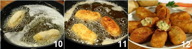 Finally, fry them in hot oil and let them brown well, turning them from one side to the other. (10-11) Drain them on a paper towel and serve hot 12.
