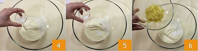 Add the salt and sugar (4-5), then the mashed potato 6.