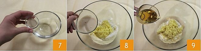 Dissolve the yeast in warm water (alternatively, you can use 12 g of fresh yeast) 7 and add the liquid to the other ingredients 8. At this point, also pour the beer in a stream 9 and