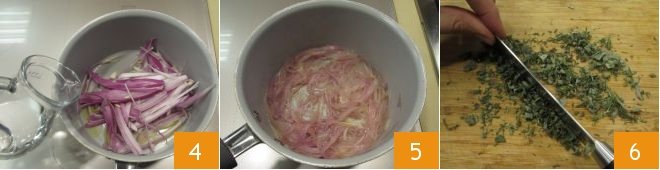 cover them with water 4, and let them stew for about 15 minutes until they are soft 5. Meanwhile, chop the thyme, sage, and rosemary 6, and set aside.