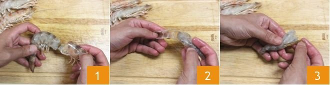 To prepare the prawn frittata, start by carefully rinsing the prawns under running water. Then remove the head by applying pressure and pulling with your fingers 1. Continue by detaching all the shells and extracting the pulp from the exoskeleton 2. Then take a small knife, make an incision along the back of the prawn, and remove the internal intestine 3. To learn how to do this best, you can consult our Cooking School: How to clean shrimp.